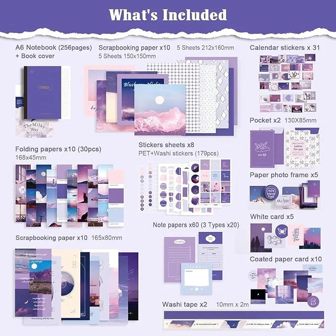 155 Pcs Notebook Washi Tape Stationery Set Hand Book.